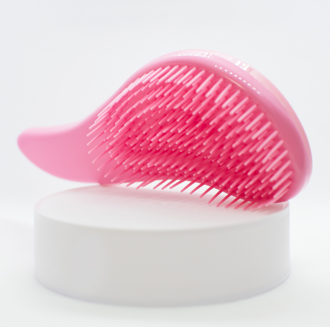 This curved brush is smaller in size with a handle for easy grip for little hands. Flexible teeth glide through the hair without pulling to detangle mini manes.