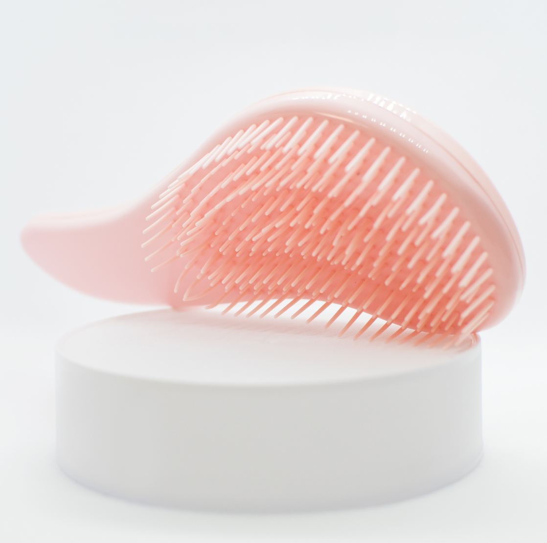 This curved brush is smaller in size with a handle for easy grip for little hands. Flexible teeth glide through the hair without pulling to detangle mini manes.