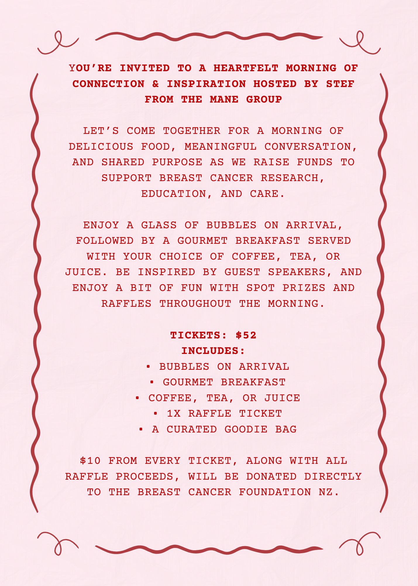 Let’s come together for a morning of delicious food, meaningful conversation, and shared purpose as we raise funds to support breast cancer research, education, and care.