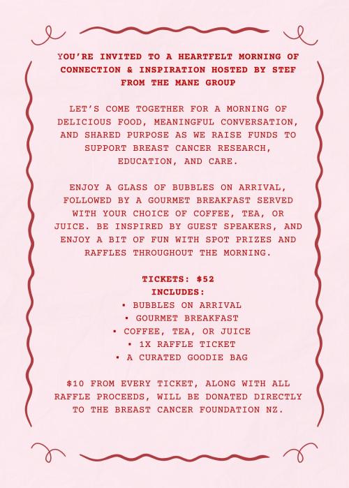 $10 from every ticket, along with all raffle proceeds, will be donated directly to the Breast Cancer Foundation NZ.